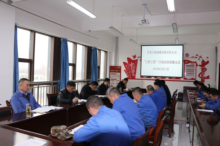 - 為全面貫徹省市“三抓三促”行動總體部署,2月27日,豐收機械公司召開動員部署會議,集中學(xué)習(xí)了省委、市委、市國資委黨委及市產(chǎn)投集團公司黨委“三抓三促”行動動員部署會議精神,并對《甘肅豐收機械有限責(zé)任公司“抓...